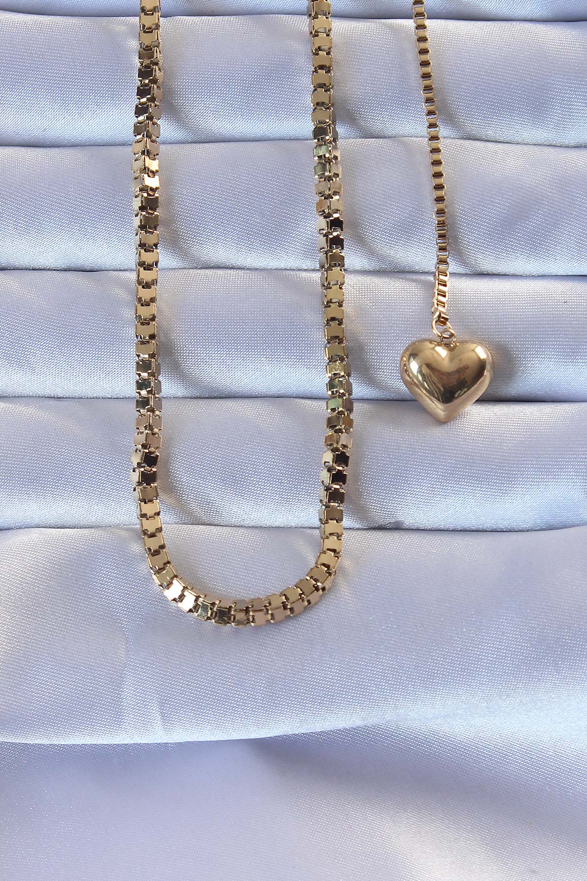 316L Çelik Altın Renk Küp Zincirli Kalpli Kolye - TJ-BKO9257