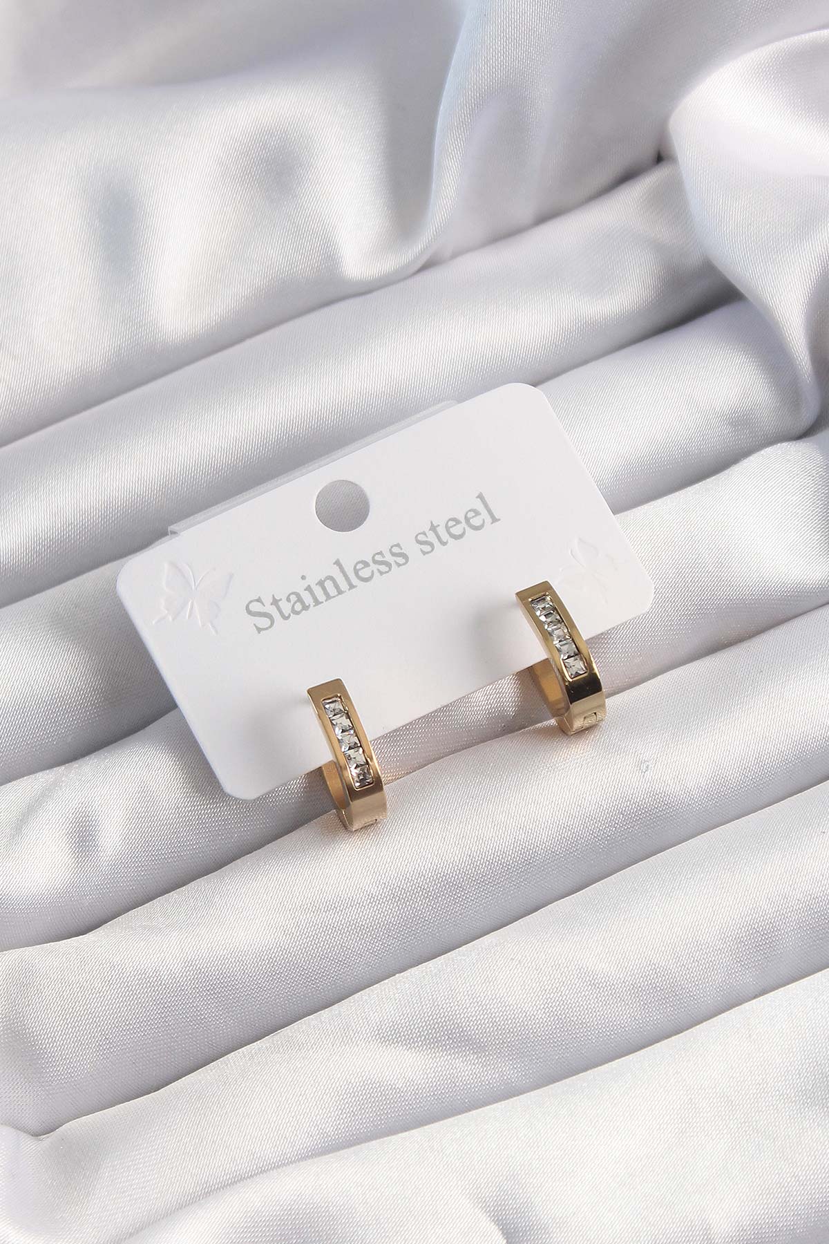 316L Çelik Altın Renk Zirkon Taşlı Halka Model Küpe - TJ-BKP9500