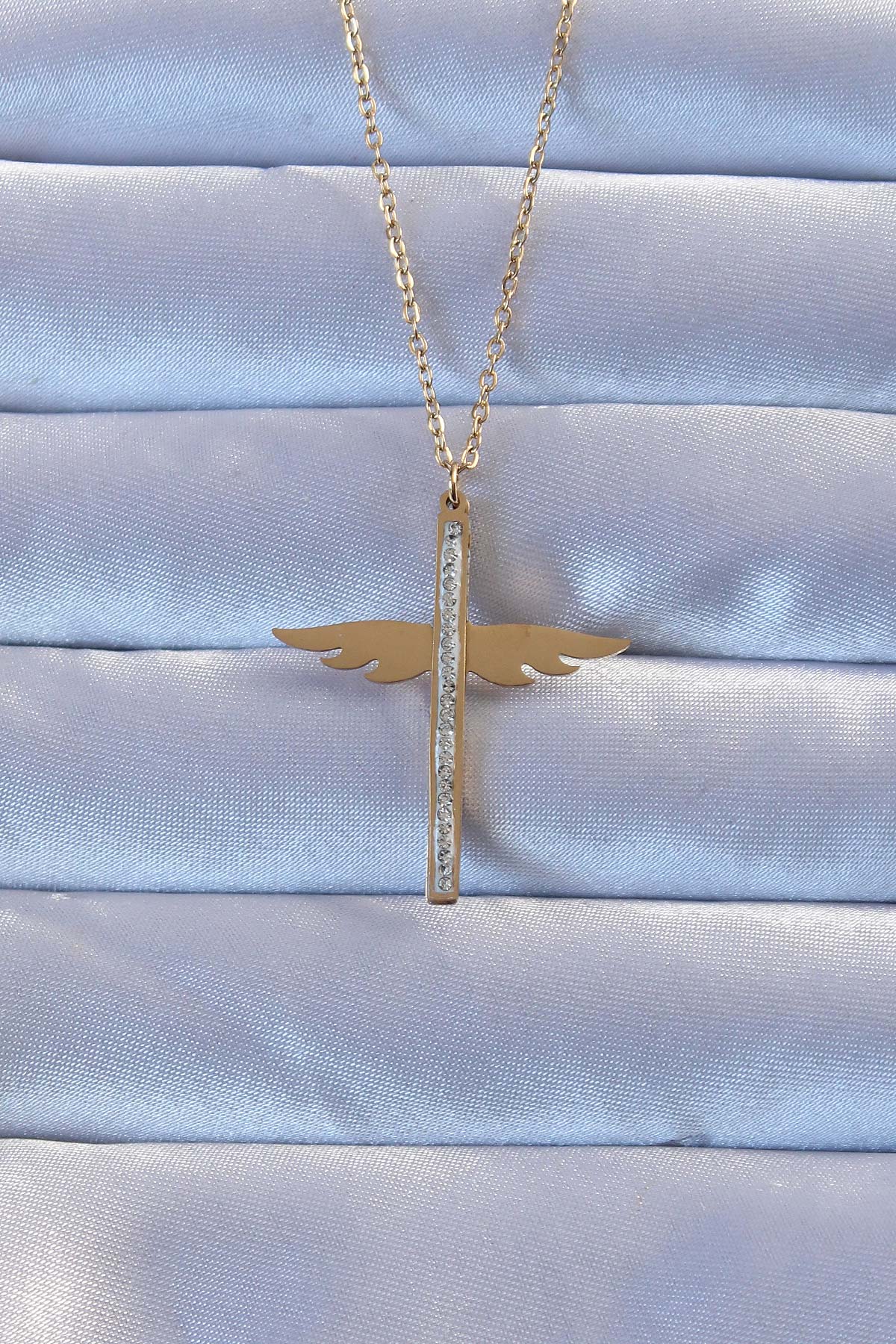 316L Çelik Altın Renk Zirkon Taşlı Mikail Kolye - TJ-BKO9265