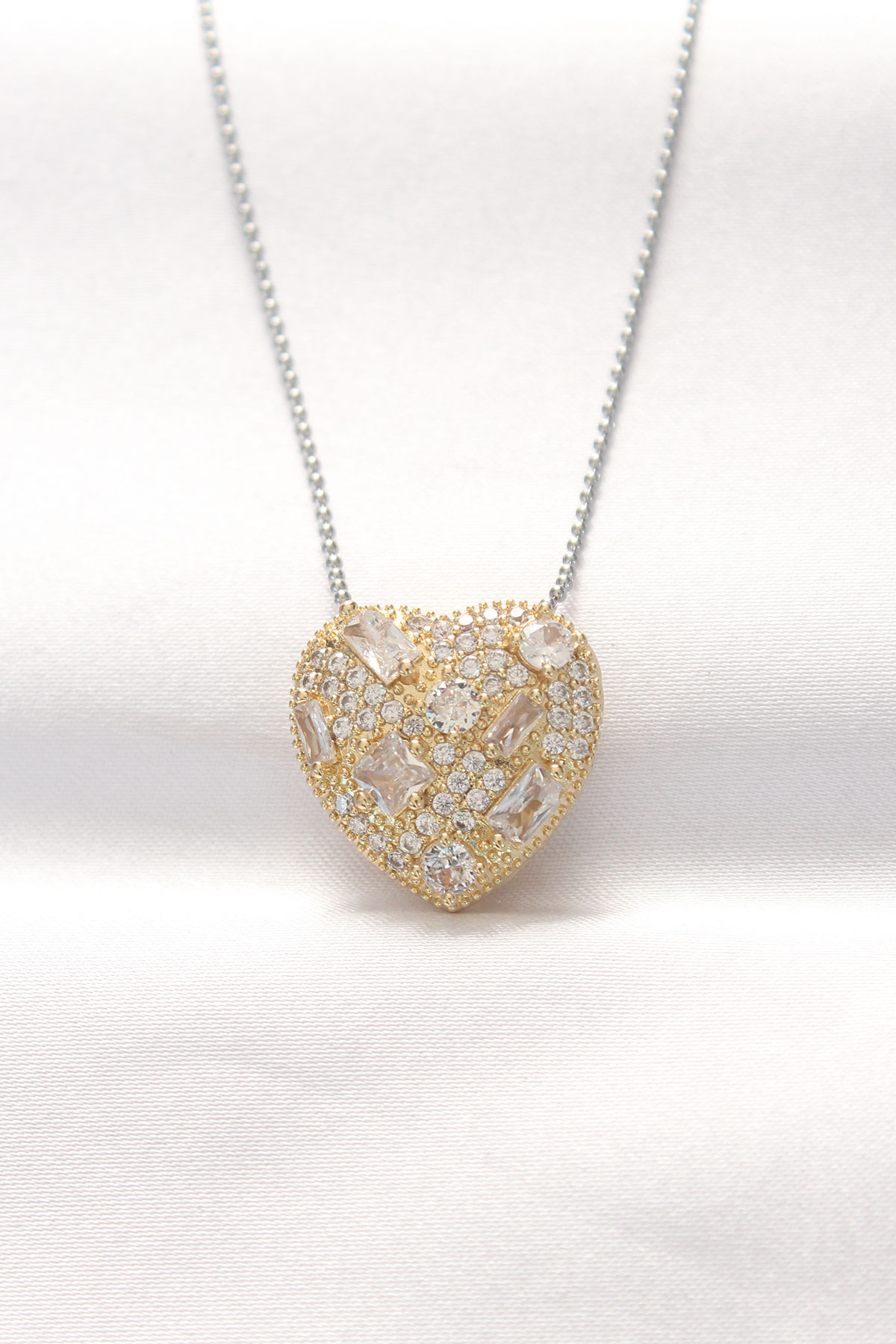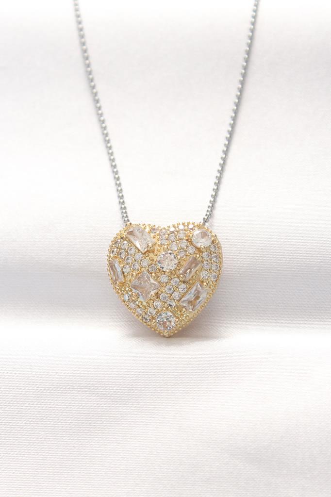 316L Çelik Çift Renk Zirkon Taşlı Kalp Kolye - TJ-BKO8521