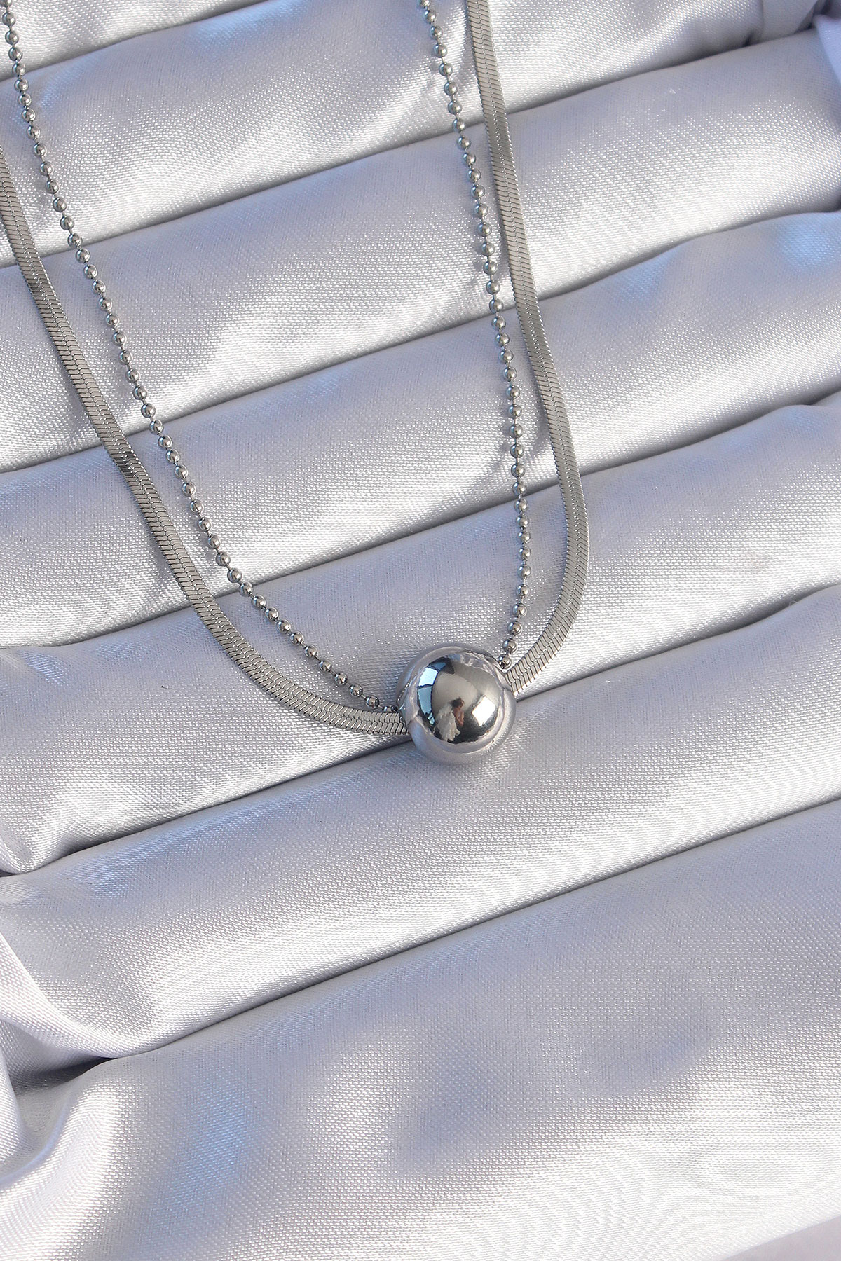 316L Çelik Çift Zincirli Gümüş Renk Topçuk İtalyan Model Kolye - TJ-BKO8877