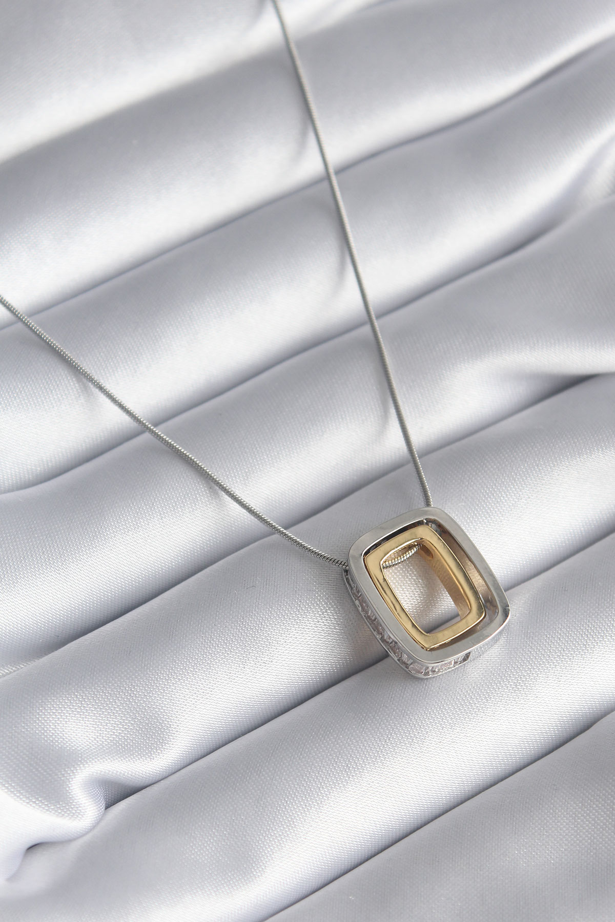 316L Çelik Gold Gümüş Renk Kare Model Zirkon Taş Detay Kadın Kolye - TJ-BKO8250