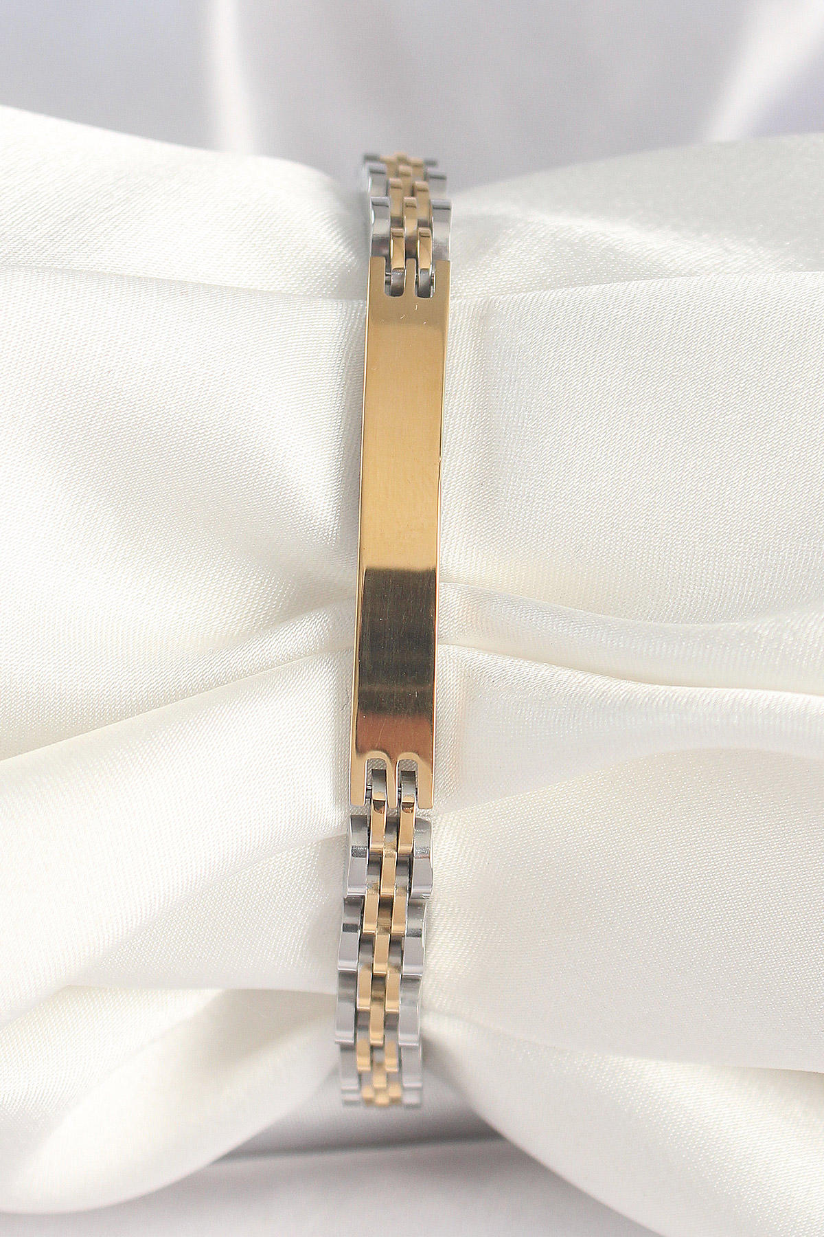 316L Çelik Gold Gümüş Renk Zincir Künye Model Erkek Bileklik - TJ-EB3714