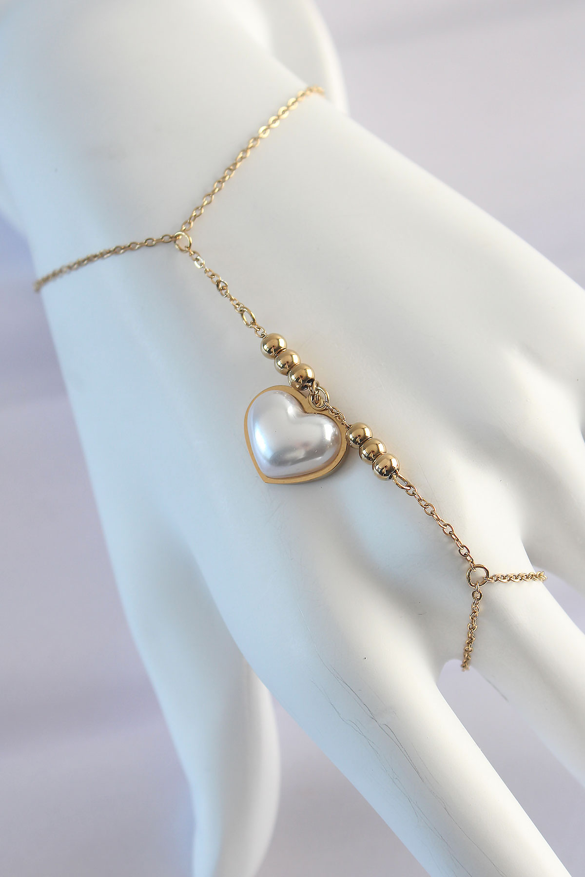 316L Çelik Gold Renk Beyaz Bubble Kalp Tasarımlı Şahmeran - TJ-SN576