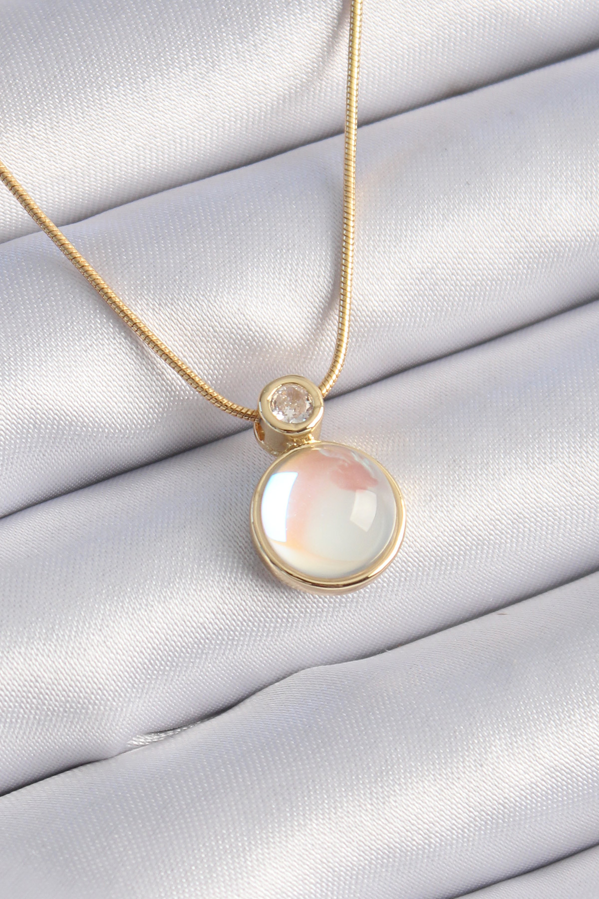 316L Çelik Gold Renk Beyaz Sedefli Vintage Kadın Kolye - TJ-BKO9328