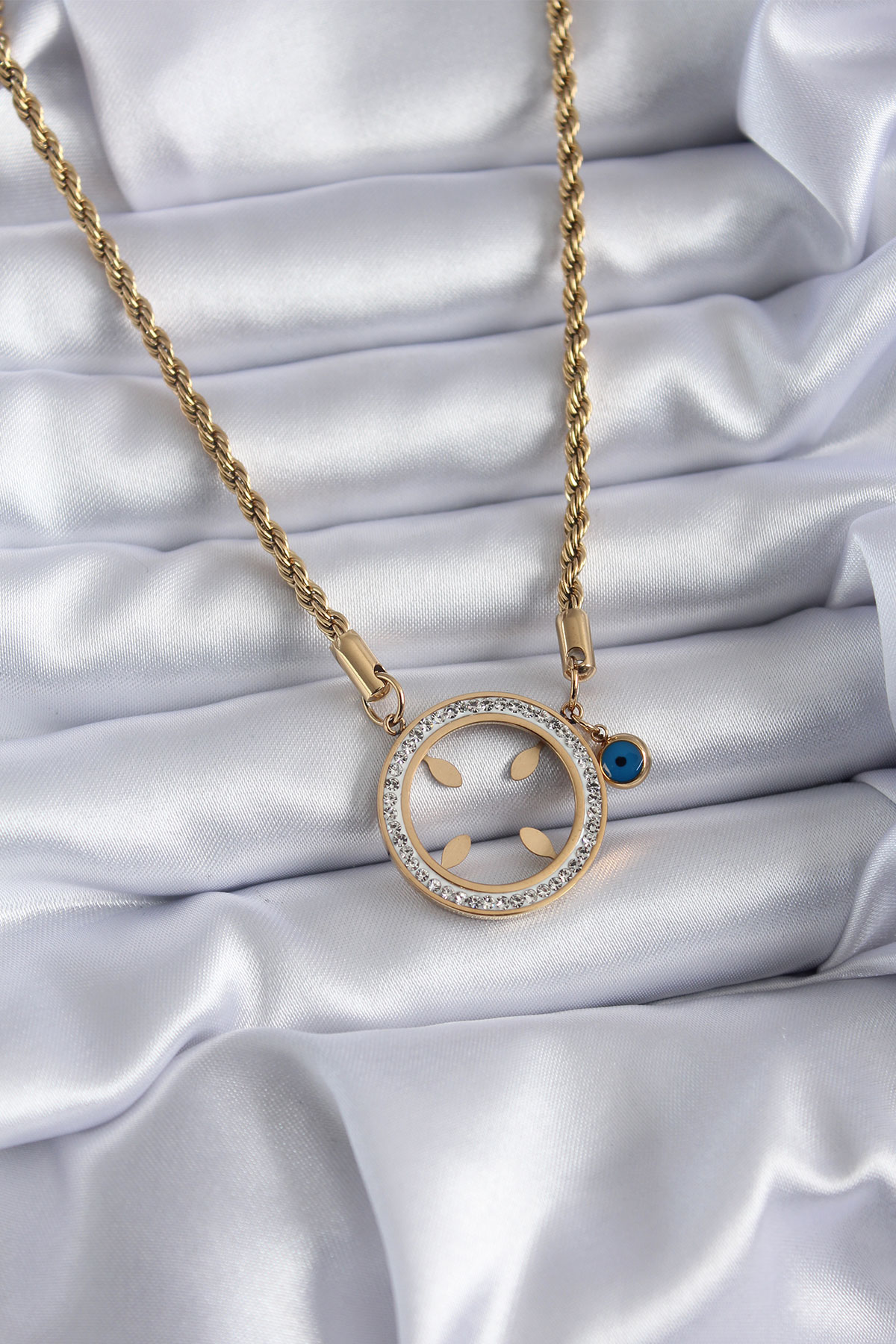 316L Çelik Gold Renk Burgu Zincir Altın Takılabilen Model Zirkon Taş Detay Kadın Kolye - TJ-BKO7784