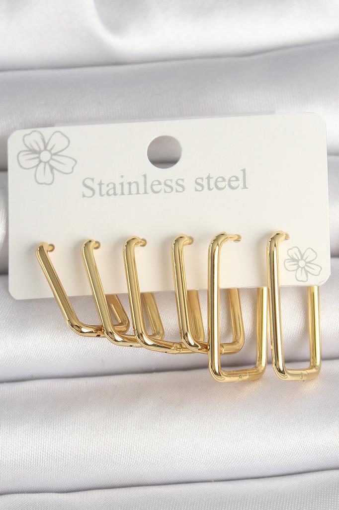 316L Çelik Gold Renk Dikdörtgen Model Kadın Küpe Seti - TJ-BKP10354