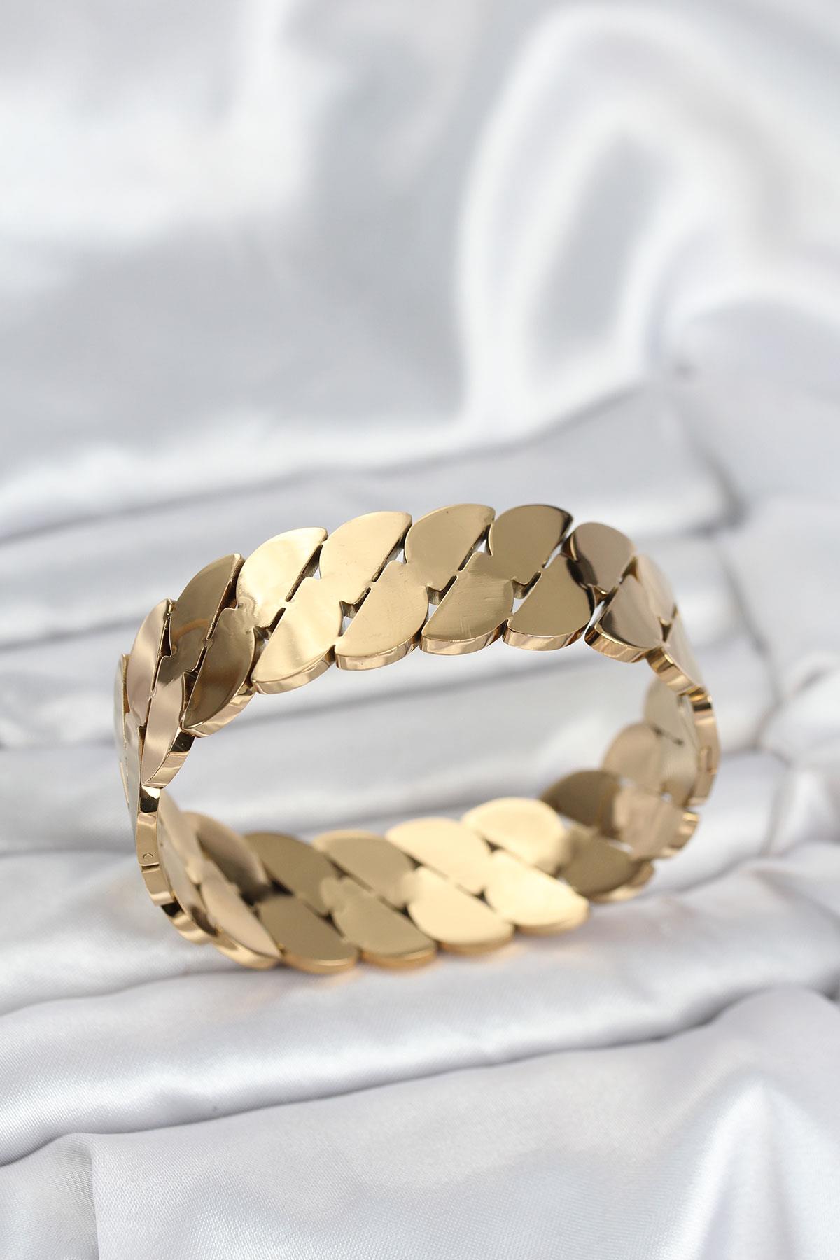 316L Çelik Gold Renk Ezme Zincir Model Kadın Kelepçe Bileklik - TJ-BB8074