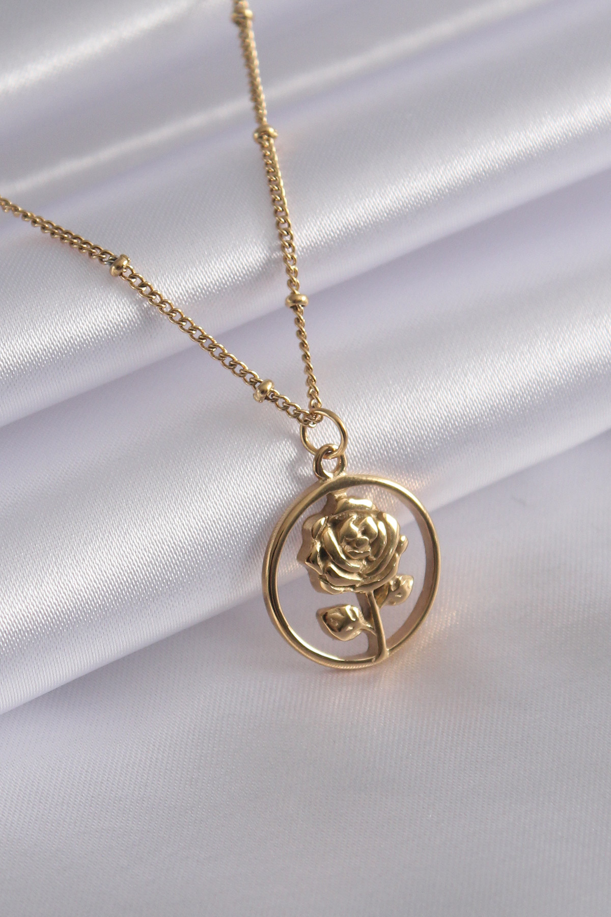316L Çelik Gold Renk Gül Figür Kadın Kolye - TJ-BKO6986