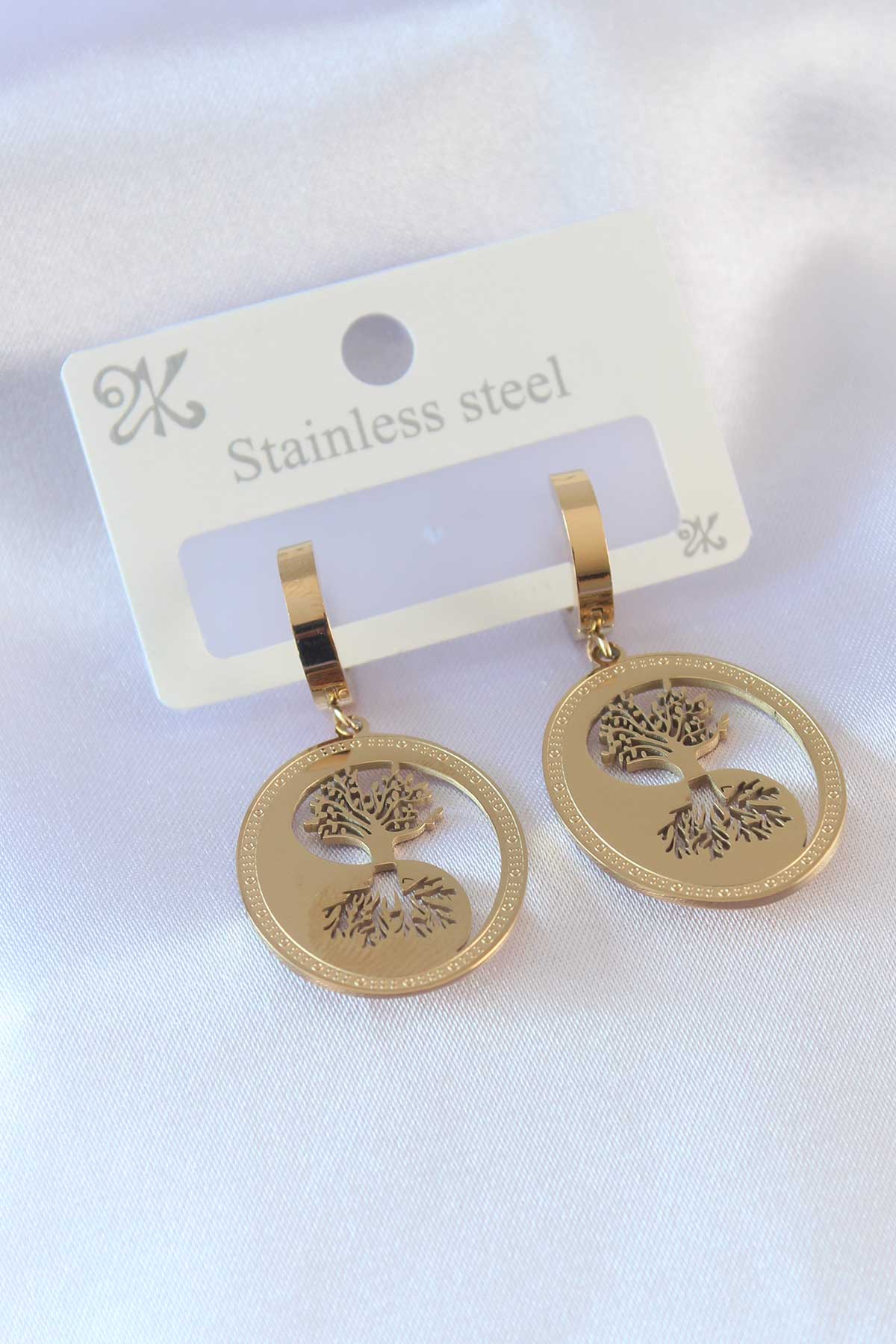 316L Çelik Gold Renk Hayat Ağacı İşleme Kadın Küpe - TJ-BKP7336