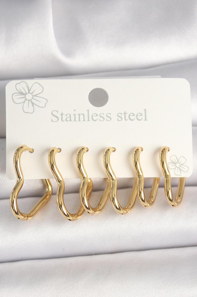 316L Çelik Gold Renk Kalp Model Kadın Küpe Seti - TJ-BKP10356