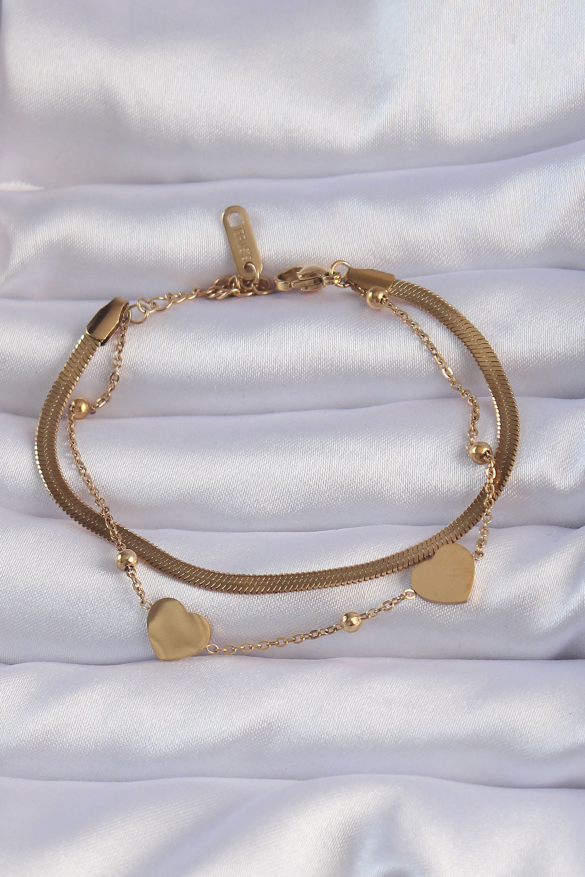 316L Çelik Gold Renk Kalpli Model İtalyan Zincirli Bileklik - TJ-BB6164