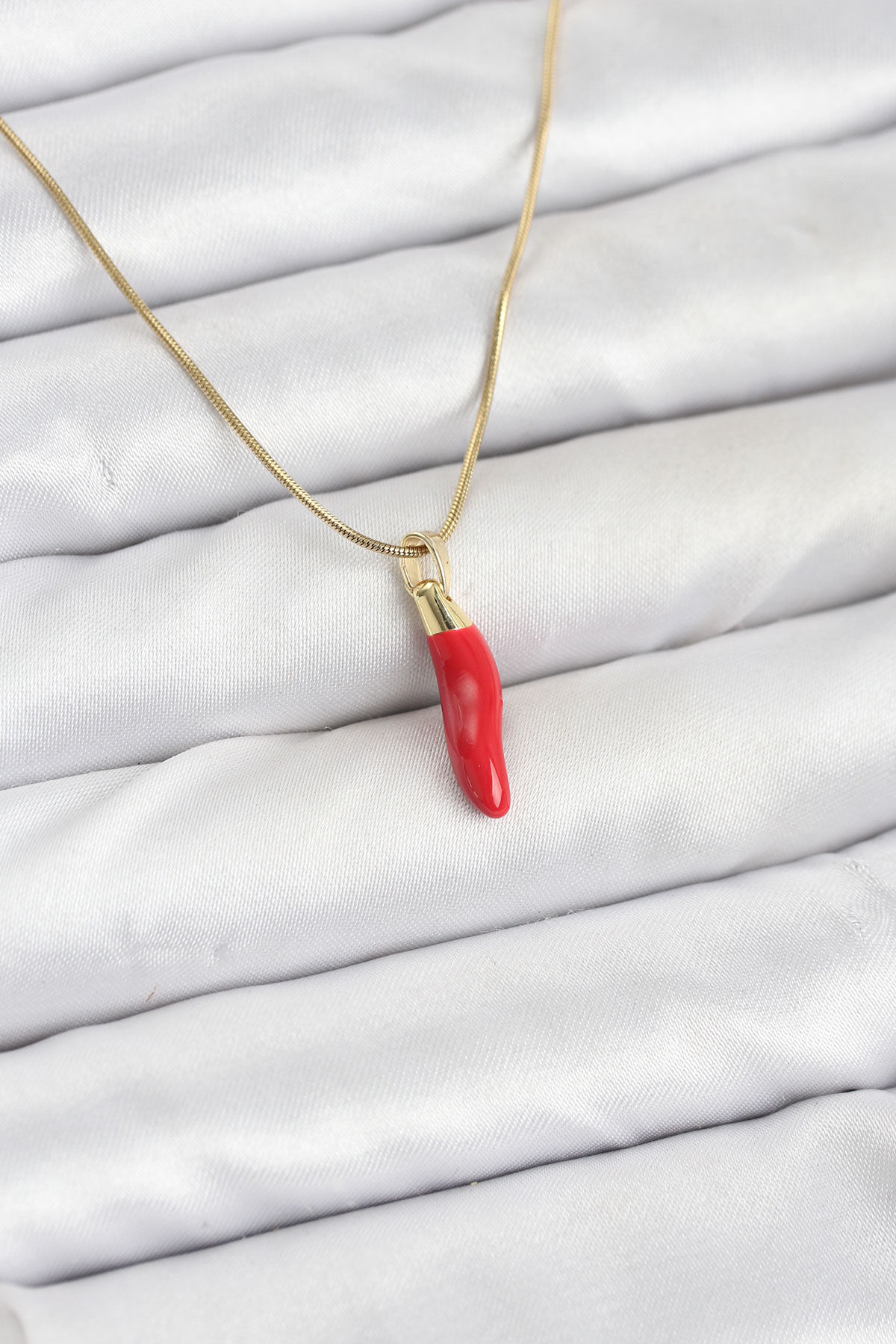 316L Çelik Gold Renk Kapya Kırmızı Biber Model Kadın Kolye - TJ-BKO10810