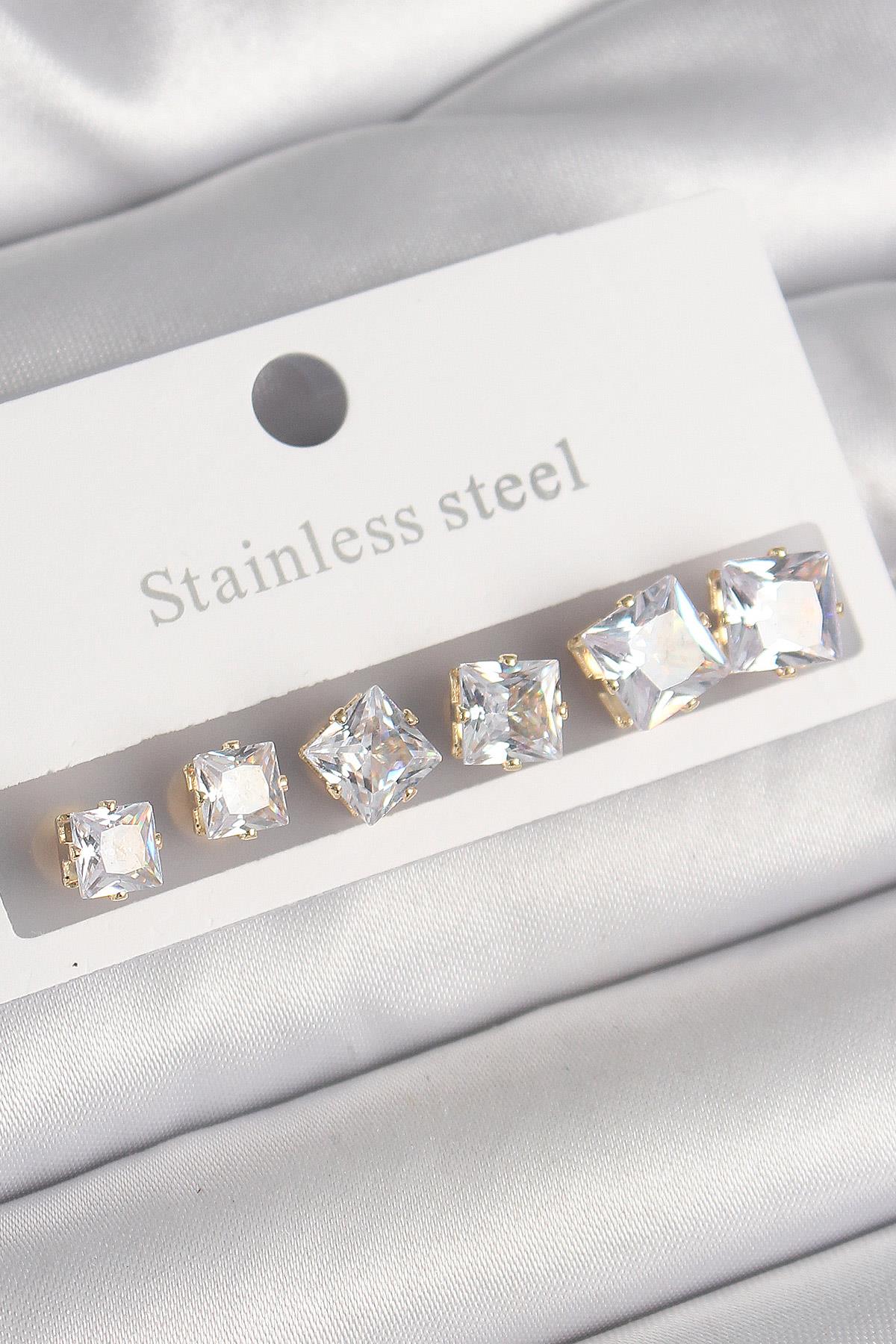 316L Çelik Gold Renk Kare Zirkon Taş Model Kadın Küpe Seti - TJ-BKP10304