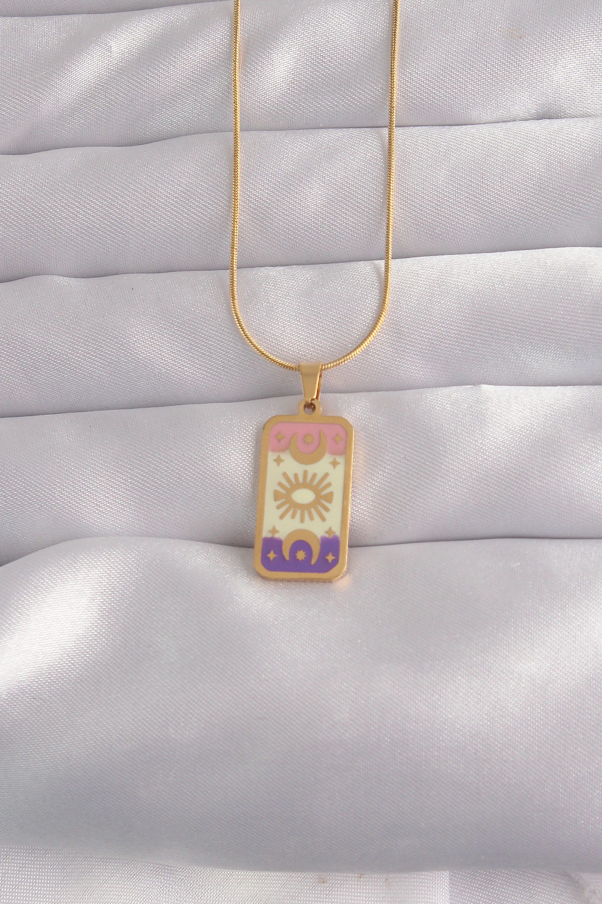 316L Çelik Gold Renk Karışık Mineli Ay Figür Tarot Kolye - TJ-BKO9032
