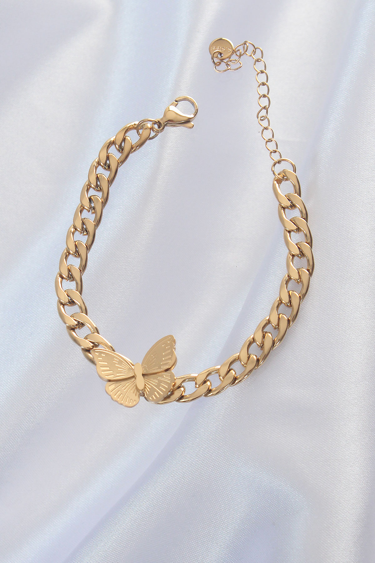 316L Çelik Gold Renk Kelebek Figür İşleme Detay Zincir Model Kadın Bileklik - TJ-BB5328