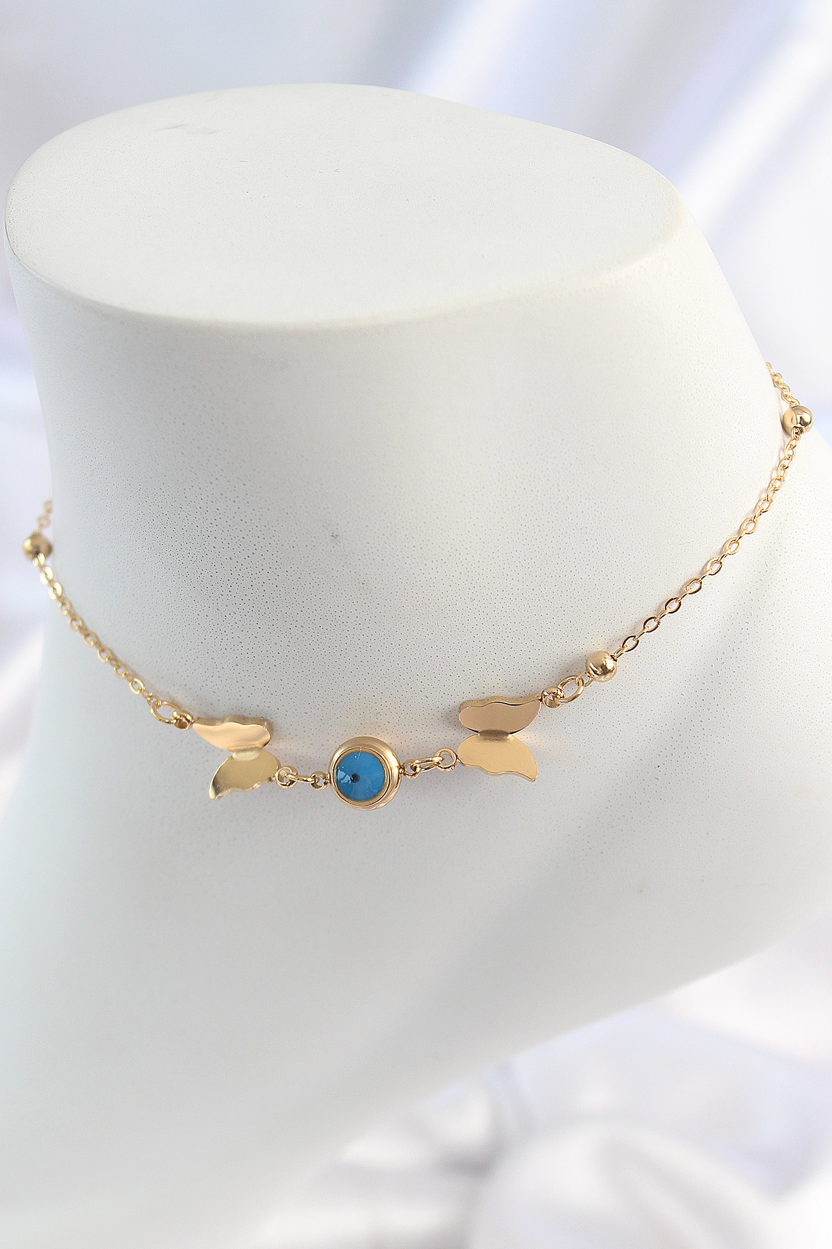 316L Çelik Gold Renk Kelebek Nazar Boncuk Figür Kadın Halhal - TJ-HH1641