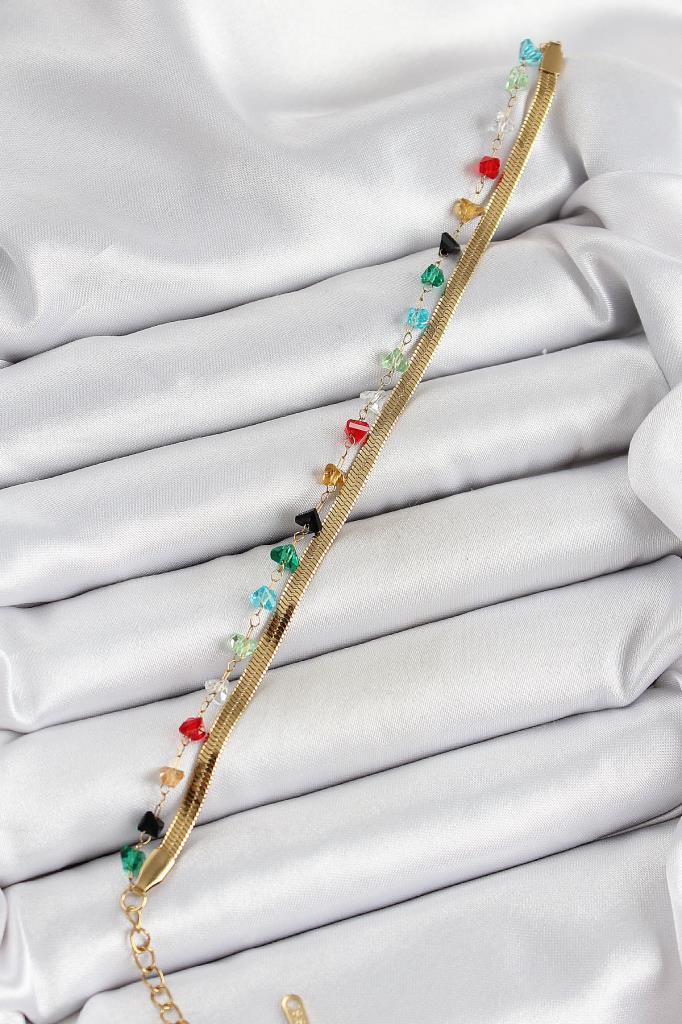 316L Çelik Gold Renk Kristal Karışık Renkli Taşlı 2'li Kadın Bileklik - BB7092