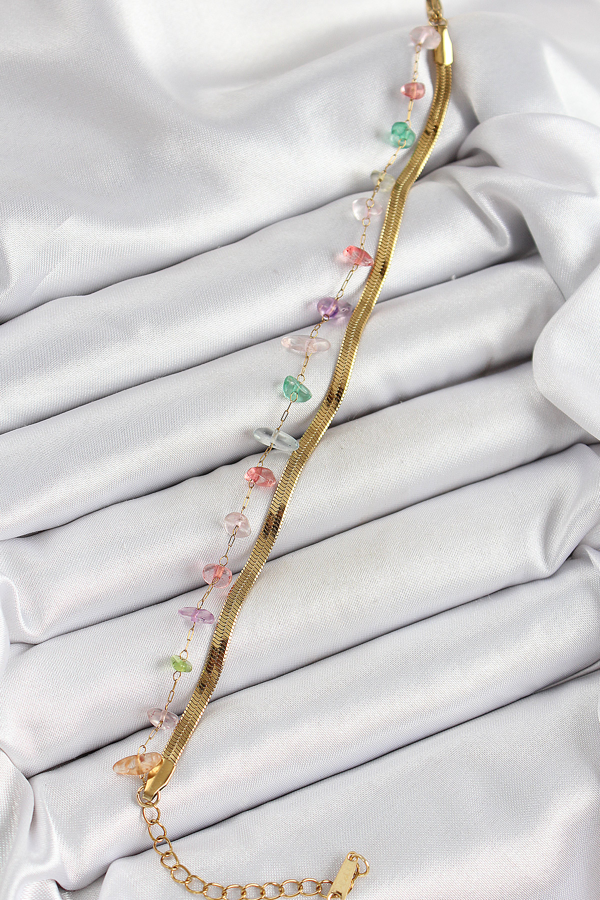 316L Çelik Gold Renk Kristal Karışık Renkli Taşlı Kadın Bileklik - TJ-BB7091