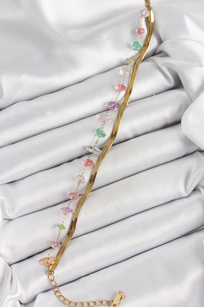 316L Çelik Gold Renk Kristal Karışık Renkli Taşlı Kadın Bileklik - BB7091