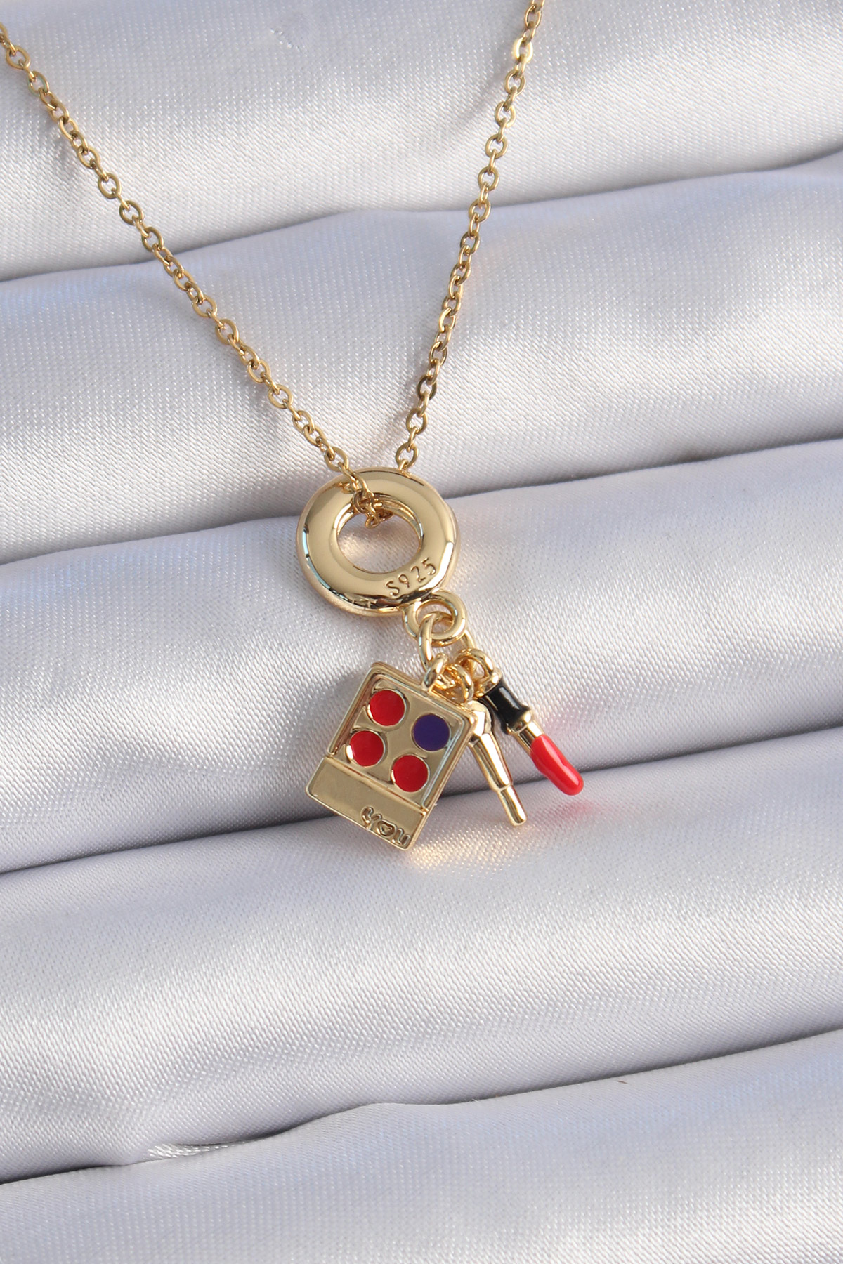 316L Çelik Gold Renk Makyaj Paleti Figür Charm Model Kadın Kolye - TJ-BKO9322