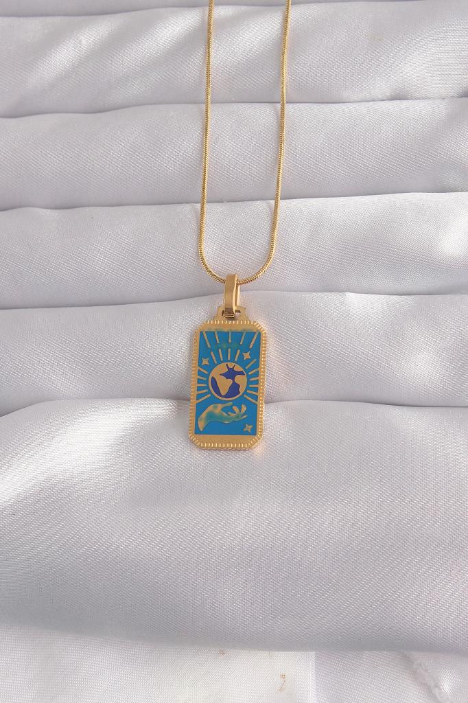 316L Çelik Gold Renk Mavi Mineli El Figür Tarot Kolye - TJ-BKO9040