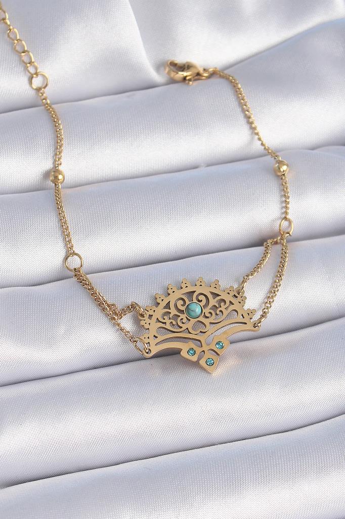 316L Çelik Gold Renk Mavi Taşlı Etnik Desen Kadın Bileklik - TJ-BB6437