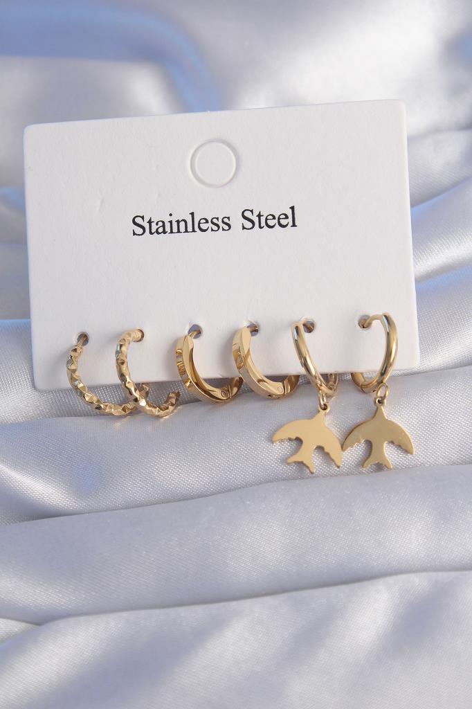 316L Çelik Gold Renk Oval Tasarım Kuş Model Küpe Seti - TJ-BKP9030