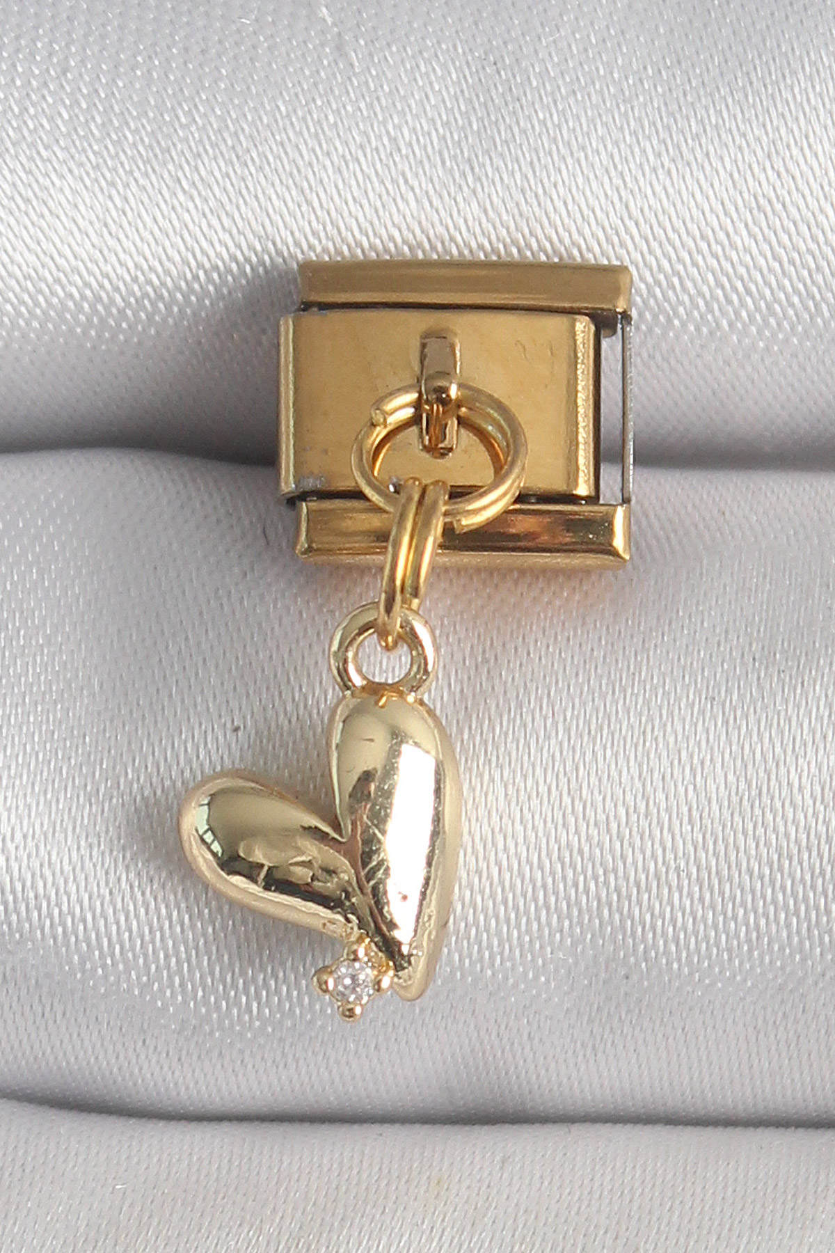 316L Çelik Gold Renk Sallantı Kalp Model Zirkon Taş Detay Nomination Charm - TJ-BC1358