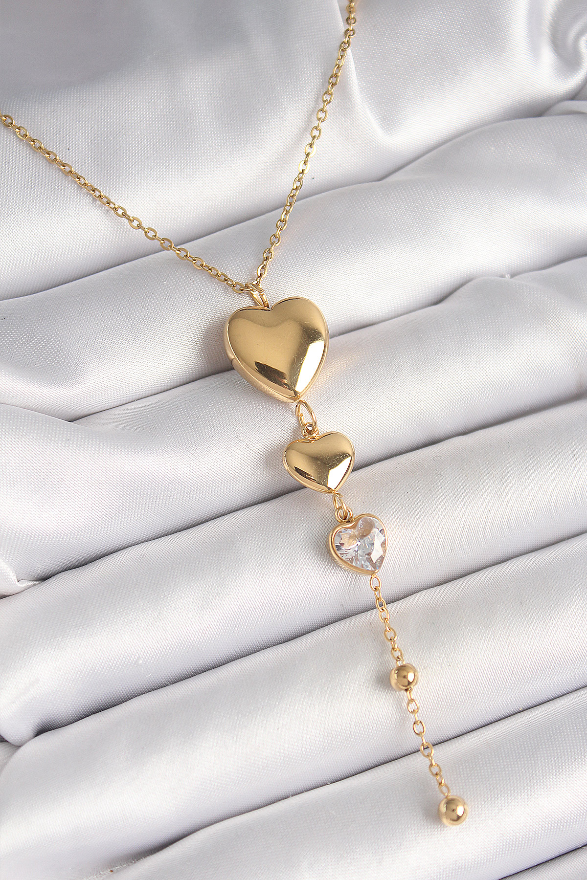 316L Çelik Gold Renk Sallantı Kalp Model Zirkon Taş Detaylı Kadın Kolye - TJ-BKO9934