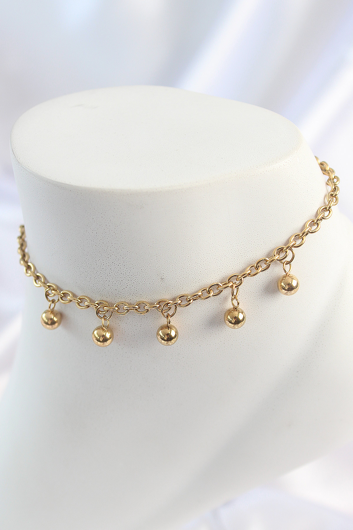 316L Çelik Gold Renk Sallantı Topçuk Zincir Model Kadın Halhal - TJ-HH1643