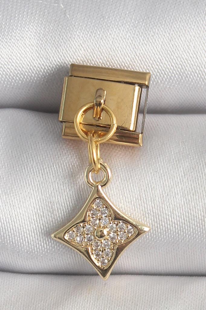 316L Çelik Gold Renk Sallantı Zirkon Taşlı Çiçek İşlemeli Nomination Charm - BC1355