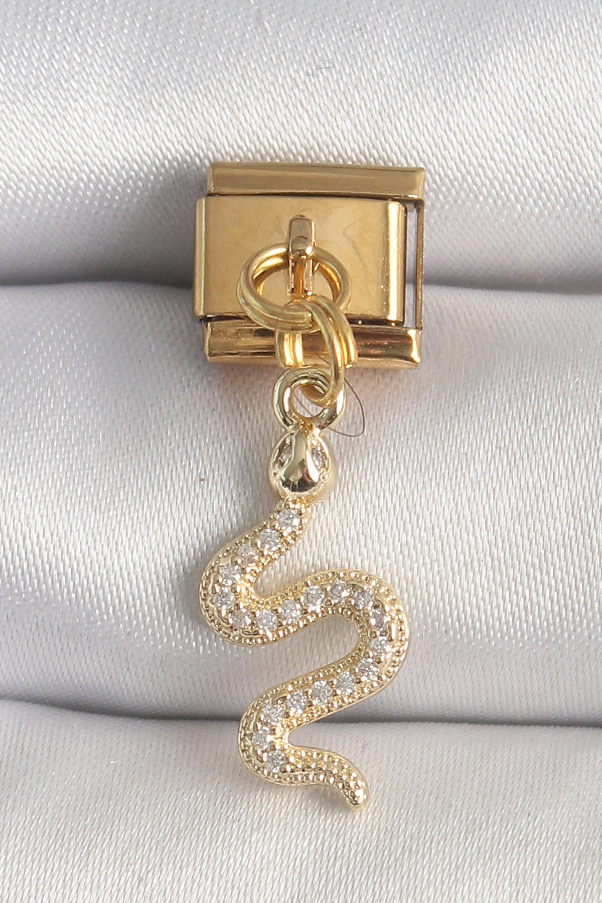 316L Çelik Gold Renk Sallantı Zirkon Taşlı Yılan Model Nomination Charm - TJ-BC1364