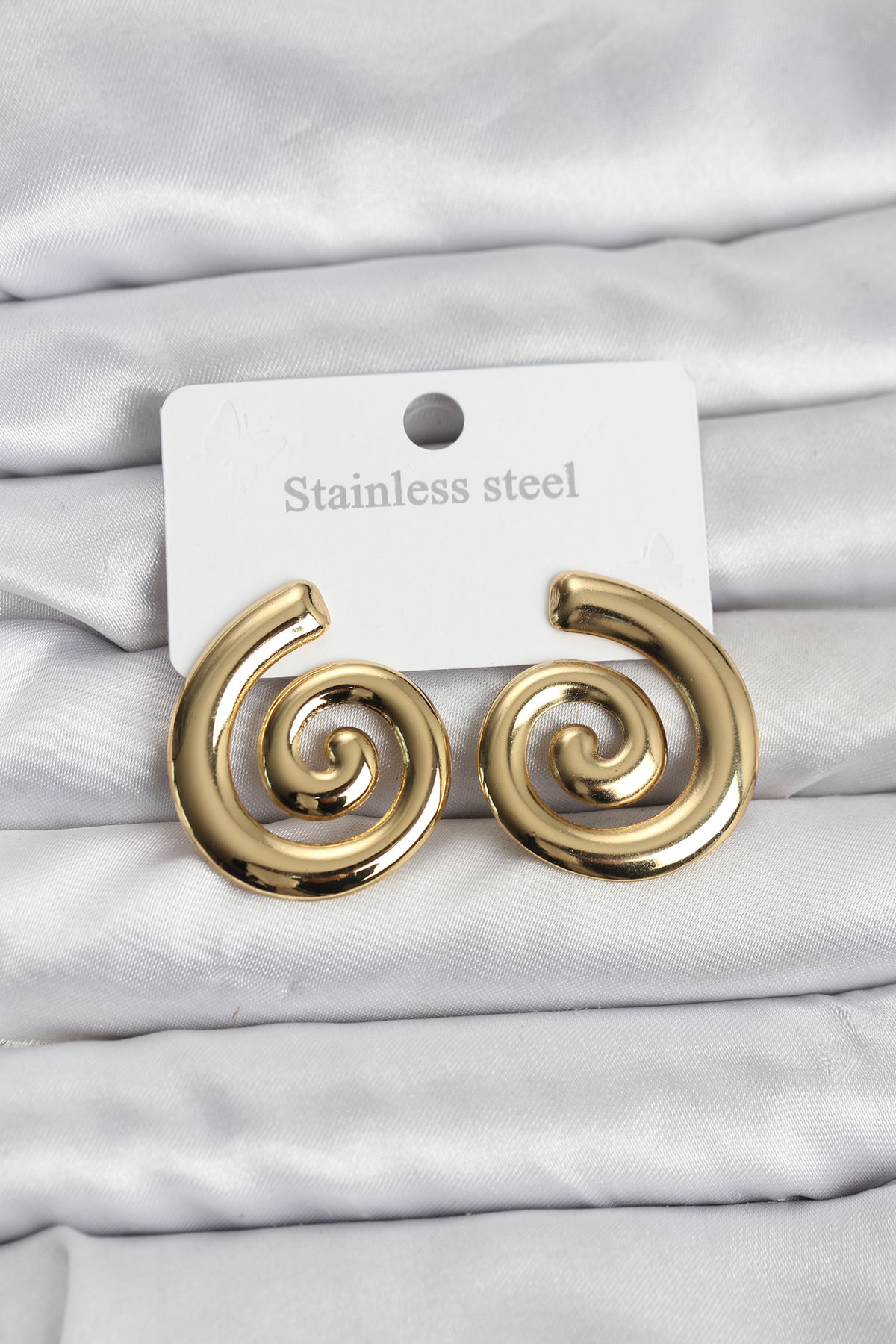316L Çelik Gold Renk Sarmal Modelli Kadın Küpe - TJ-BKP11508