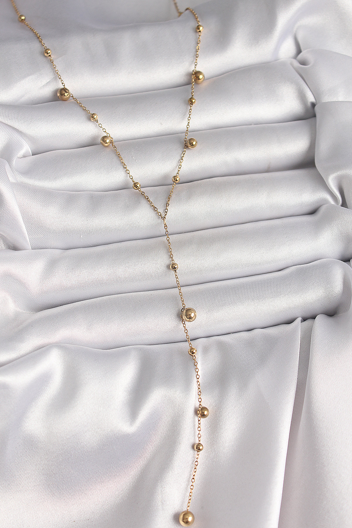 316L Çelik Gold Renk Topçuklu Model Kadın Y Kolye - TJ-BKO10011