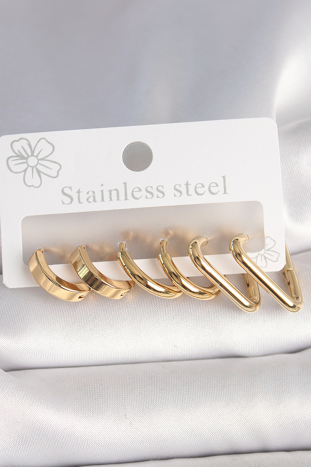 316L Çelik Gold Renk Üçgen Halka Model Kadın Küpe Seti - TJ-BKP10390
