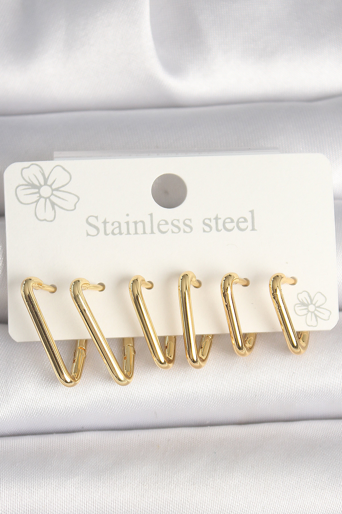 316L Çelik Gold Renk Üçgen Model Kadın Küpe Seti - TJ-BKP10350