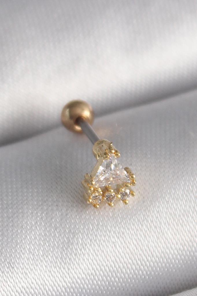 316L Çelik Gold Renk Üçgen Zirkon Taşlı Tragus Piercing - TJ-PR1238