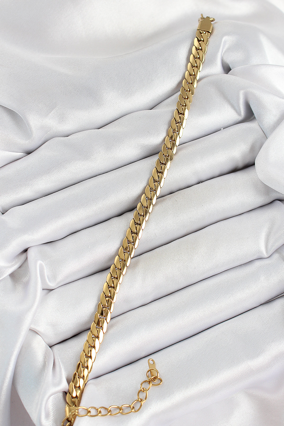 316L Çelik Gold Renk Yassı Zincir Kadın Bileklik - TJ-BB7077