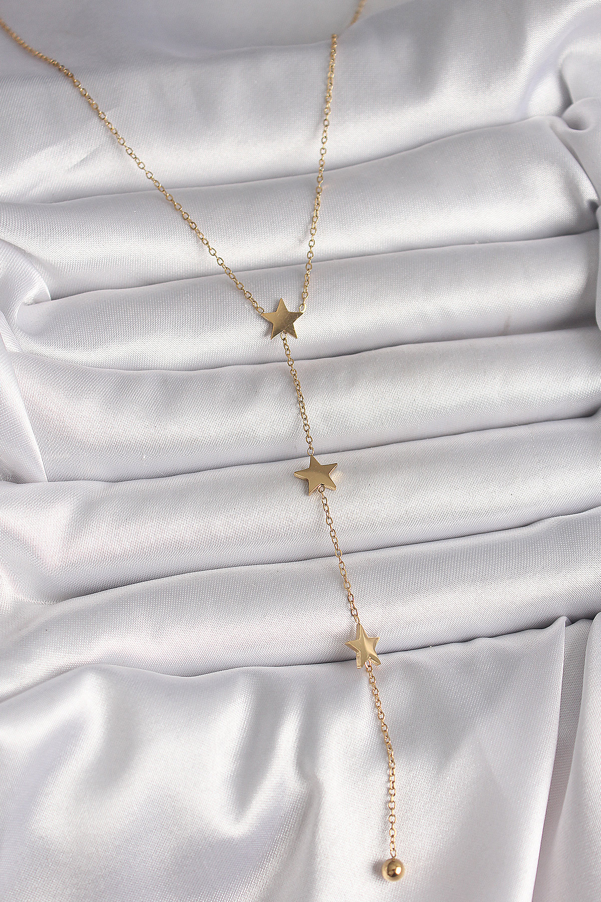 316L Çelik Gold Renk Yıldız Model Topçuk Detay Kadın Y Kolye - TJ-BKO10013