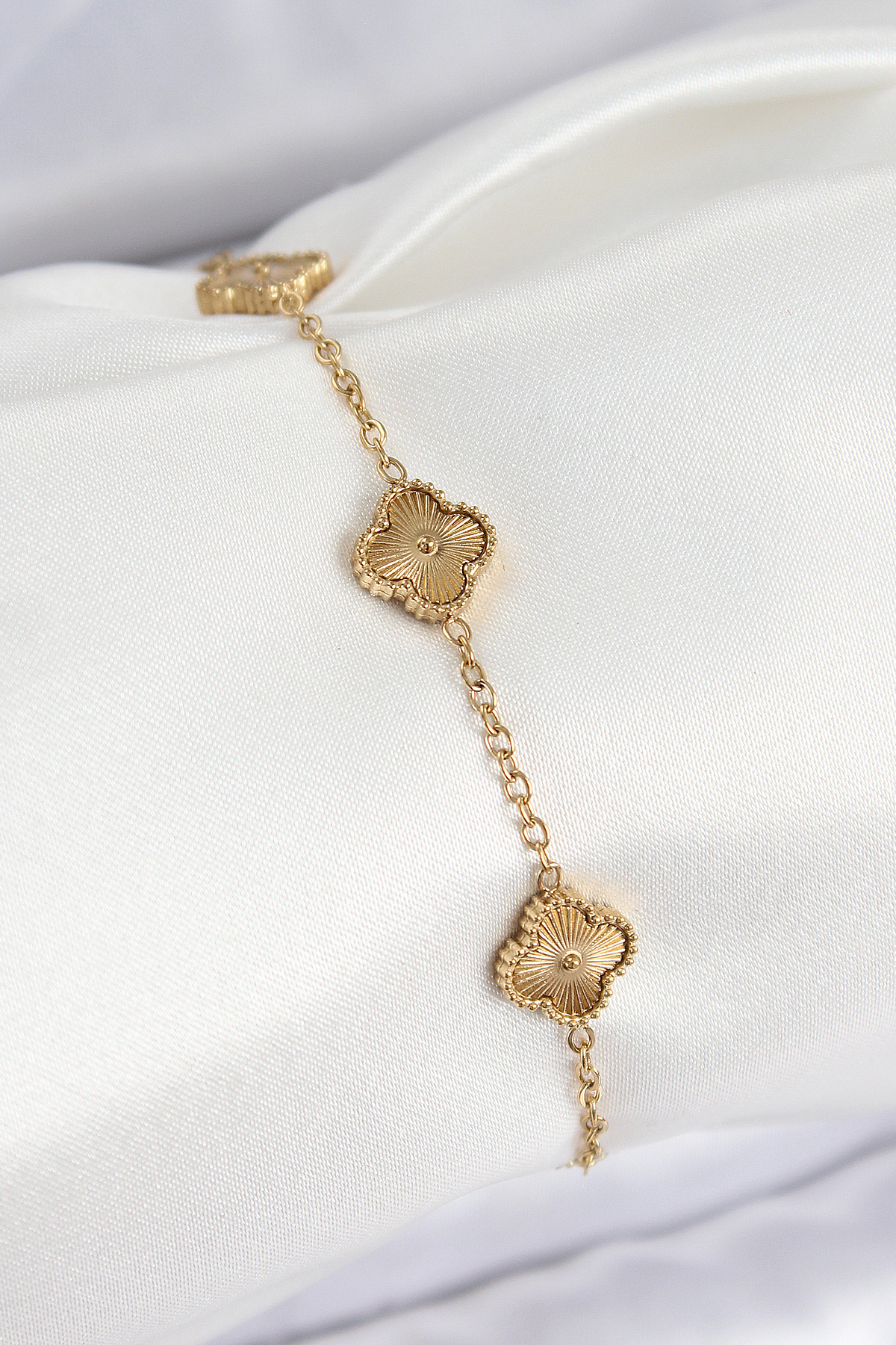 316L Çelik Gold Renk Yonca Kadın Bileklik - TJ-BB7675