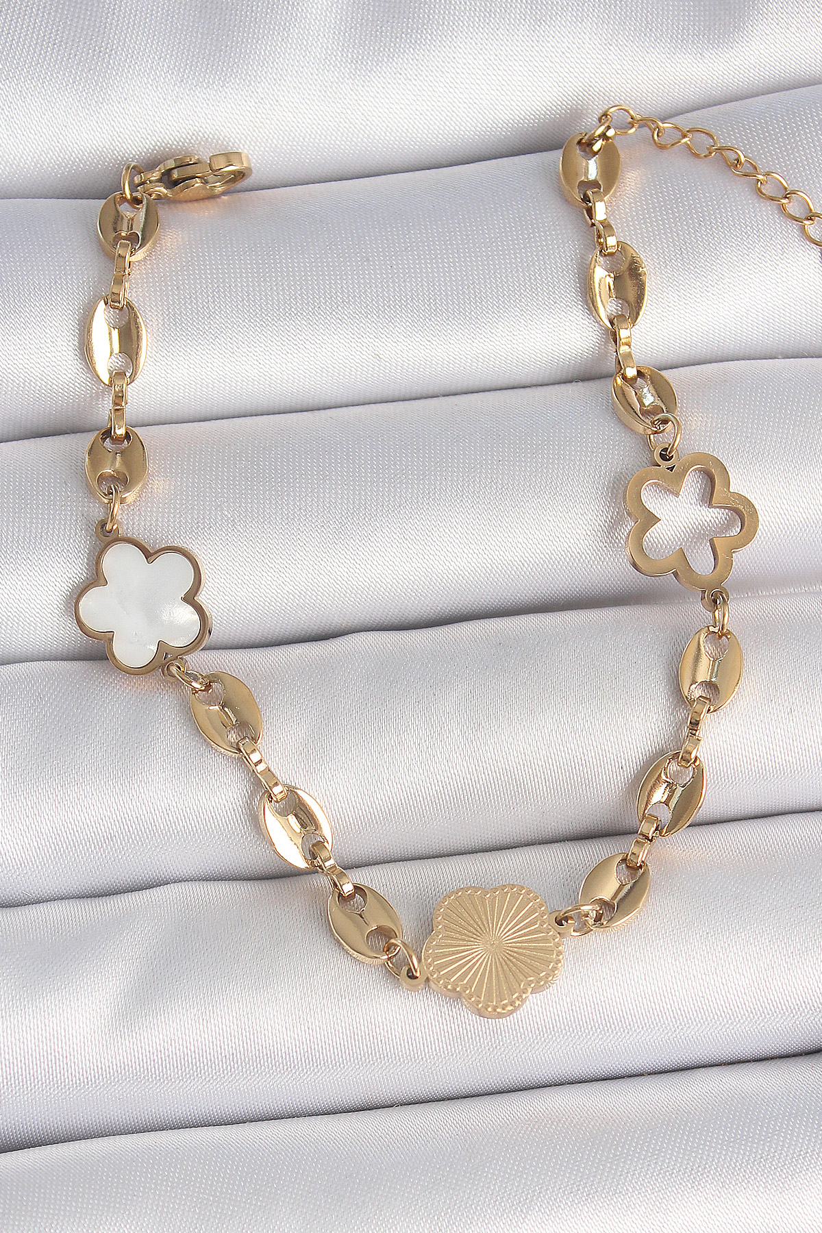 316L Çelik Gold Renk Yonca Model İşleme Detaylı Kadın Bileklik - TJ-BB6951