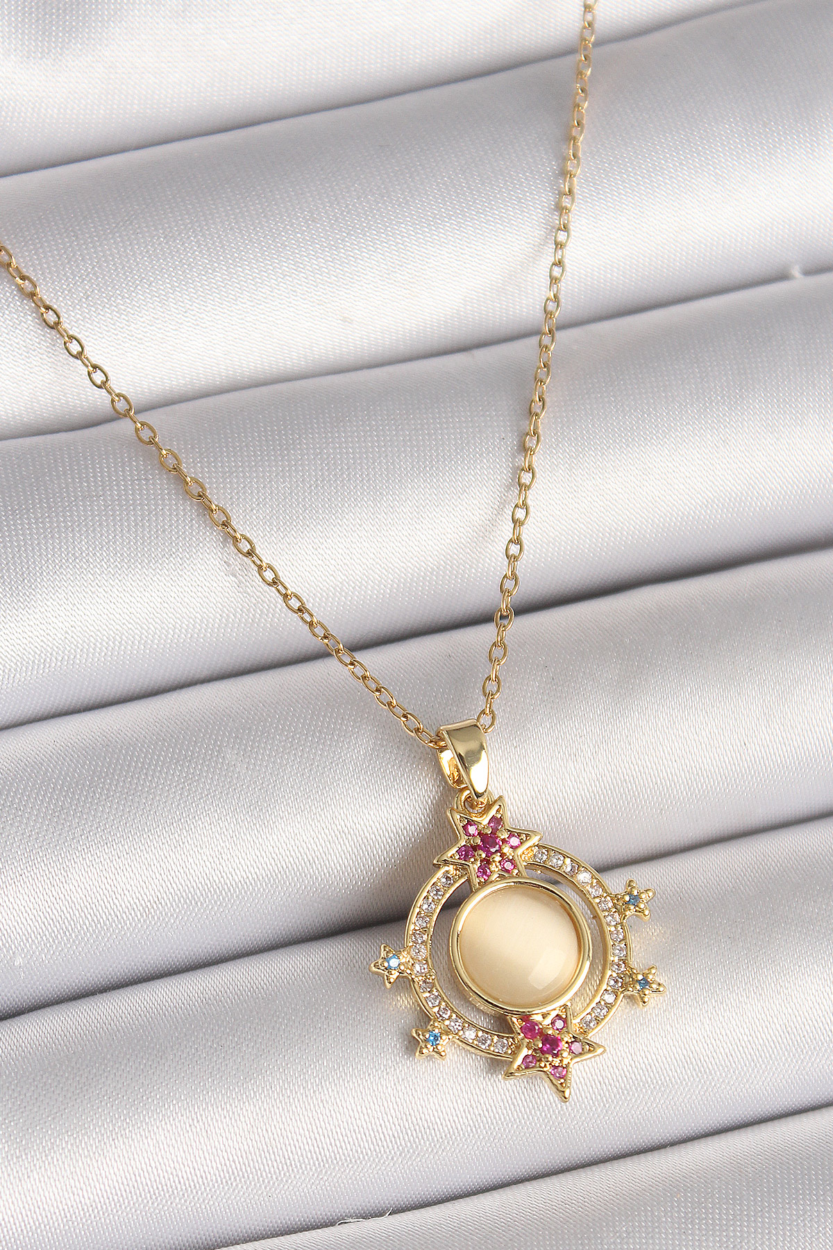316L Çelik Gold Renk Zincir Beyaz Sedefli Zirkon Taşlı Yıldız Detay Kadın Kolye - TJ-BKO9871