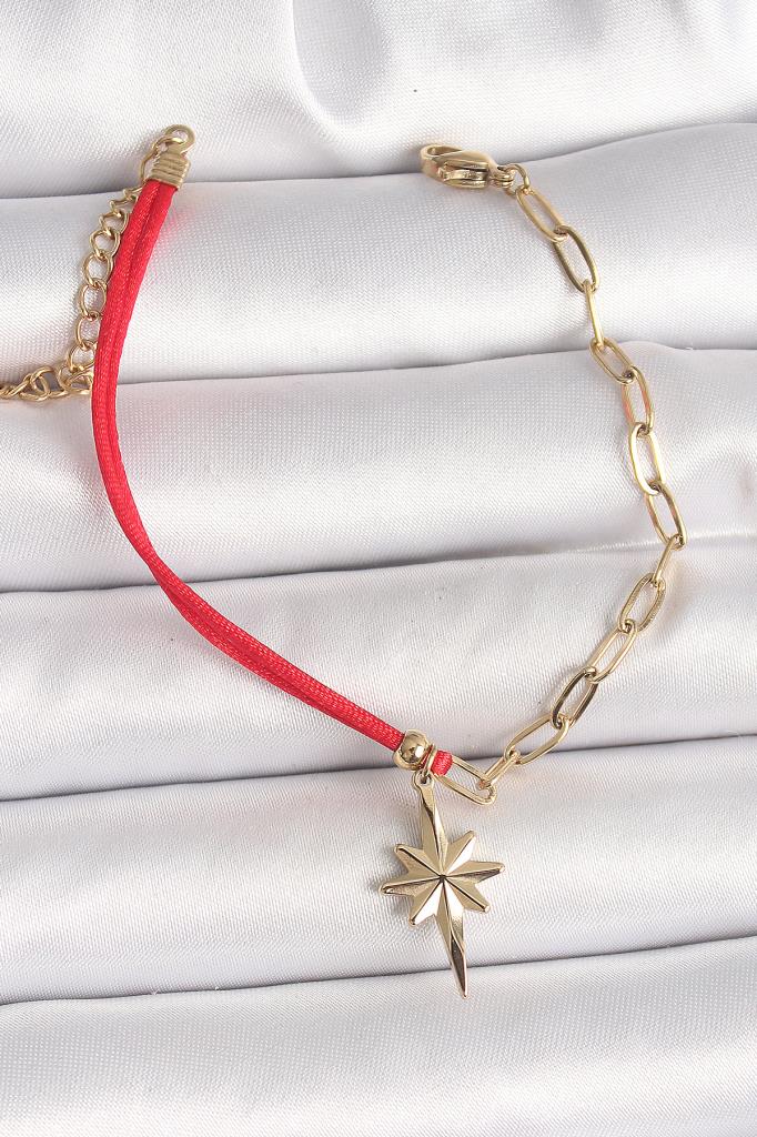 316L Çelik Gold Renk Zincir Kırmızı İp Model Sallantı Kutup Yıldız Figür Kadın Bileklik - BB6869