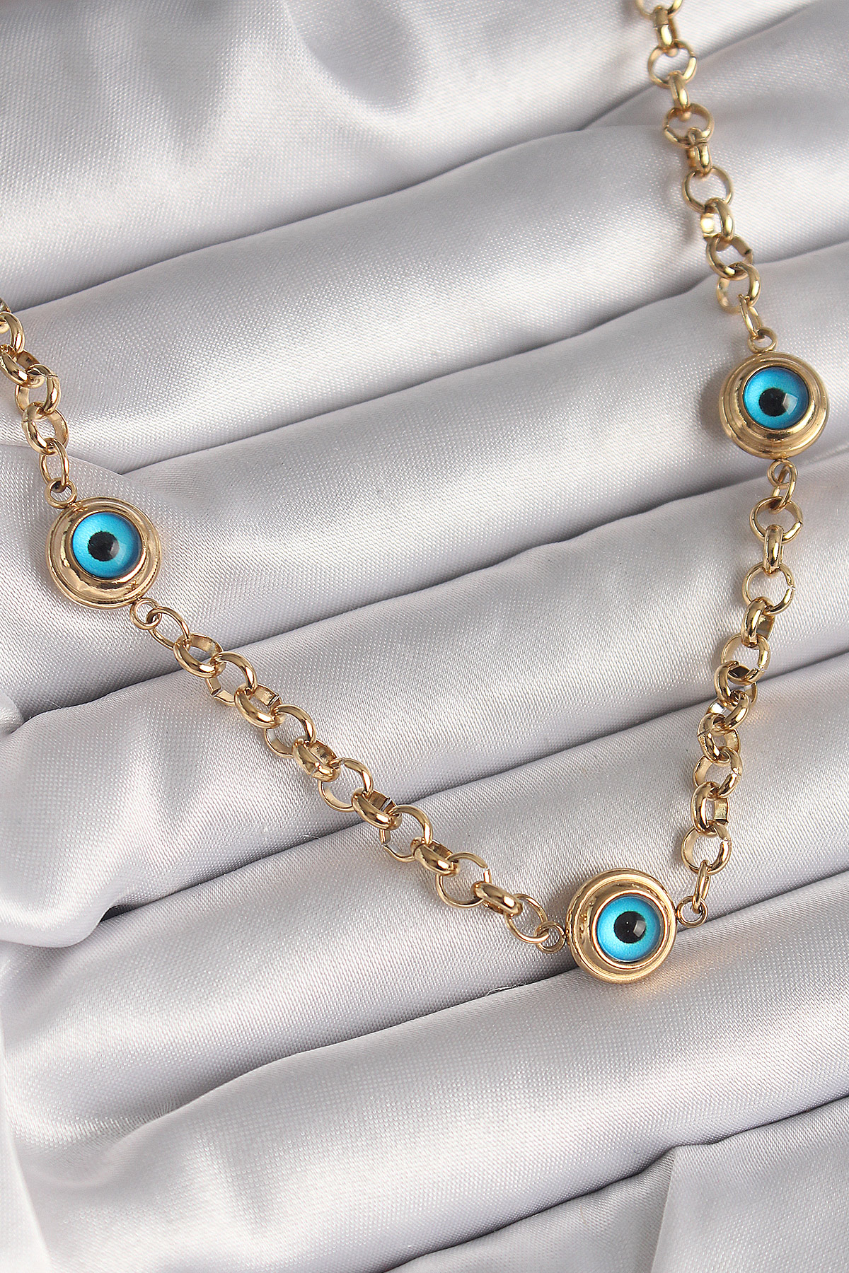316L Çelik Gold Renk Zincir Nazar Boncuk Model Kadın Kolye - TJ-BKO9876