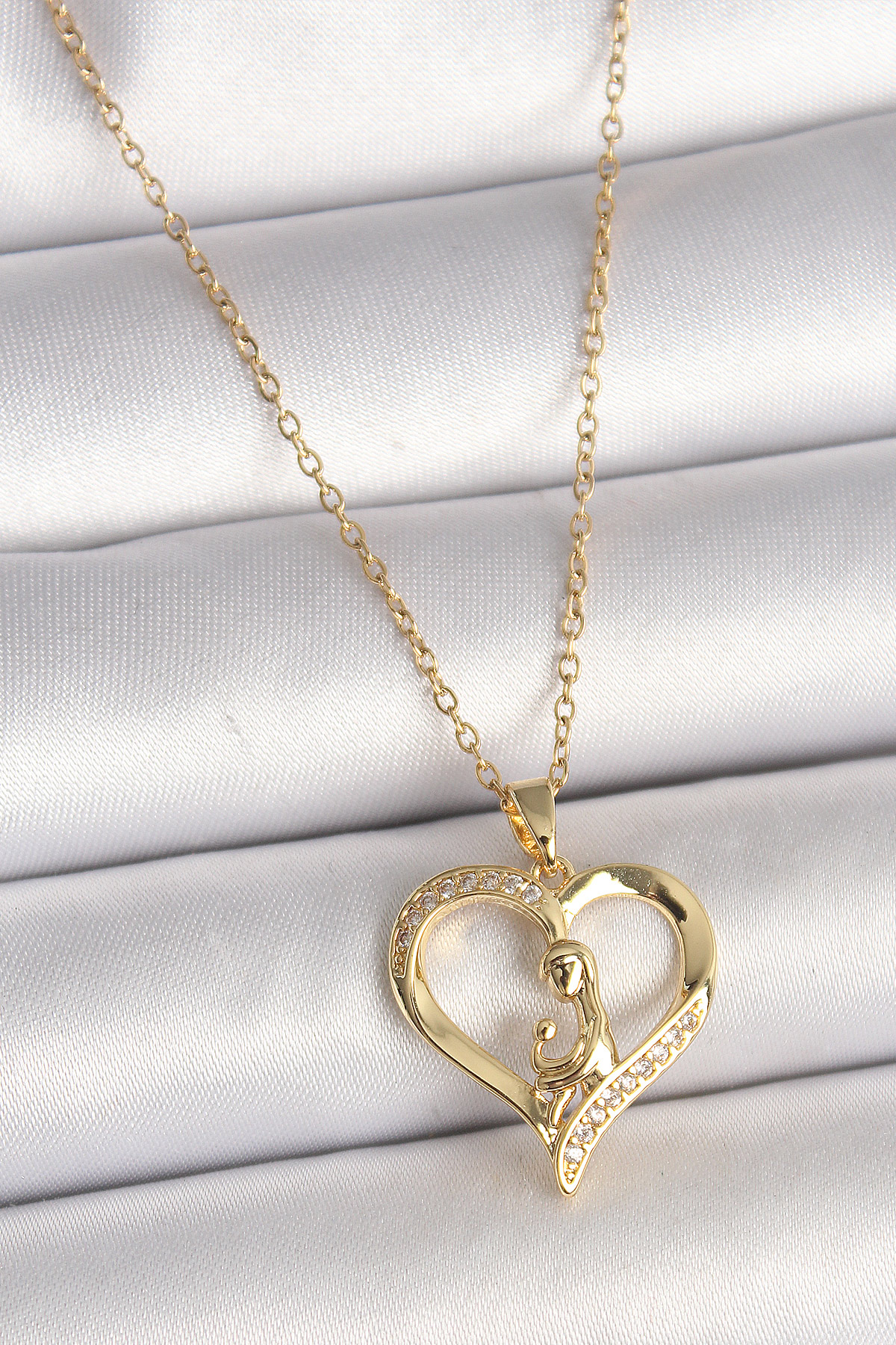 316L Çelik Gold Renk Zincir Zirkon Taşlı Kalp Model Kadın Kolye - TJ-BKO9855