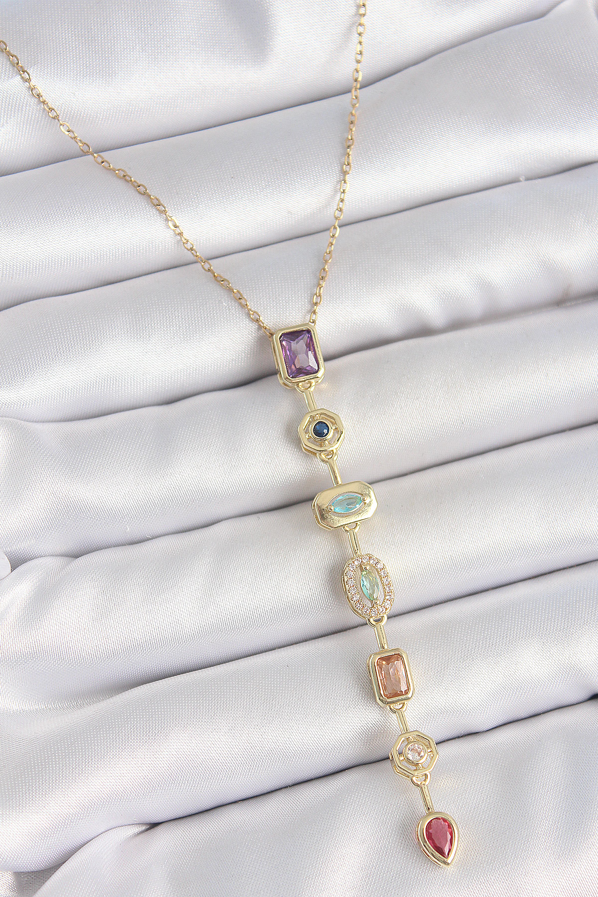 316L Çelik Gold Renk Zincir Zirkon Taşlı Y Model Dekolte Kadın Kolye - TJ-BKO10206