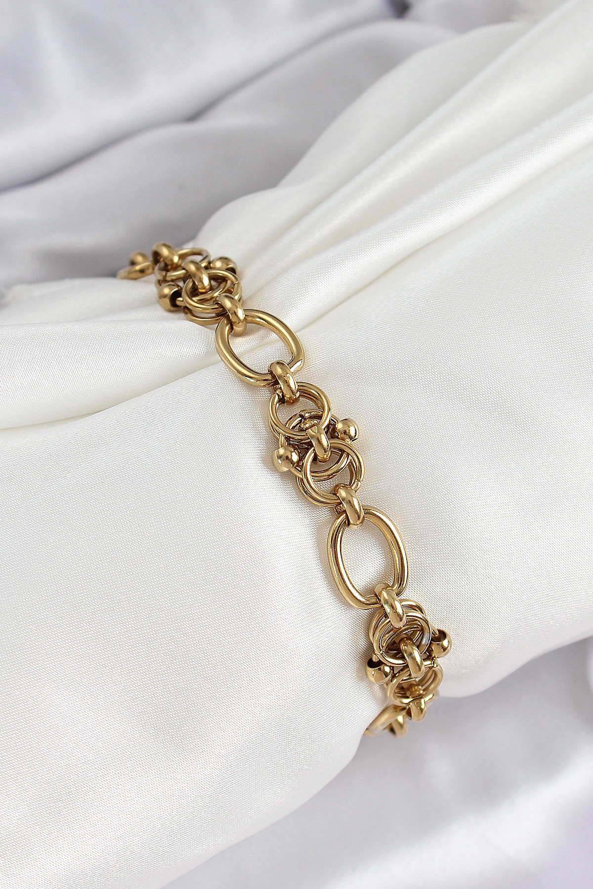 316L Çelik Gold Renk Zincirli Kadın Bileklik - TJ-BB7075