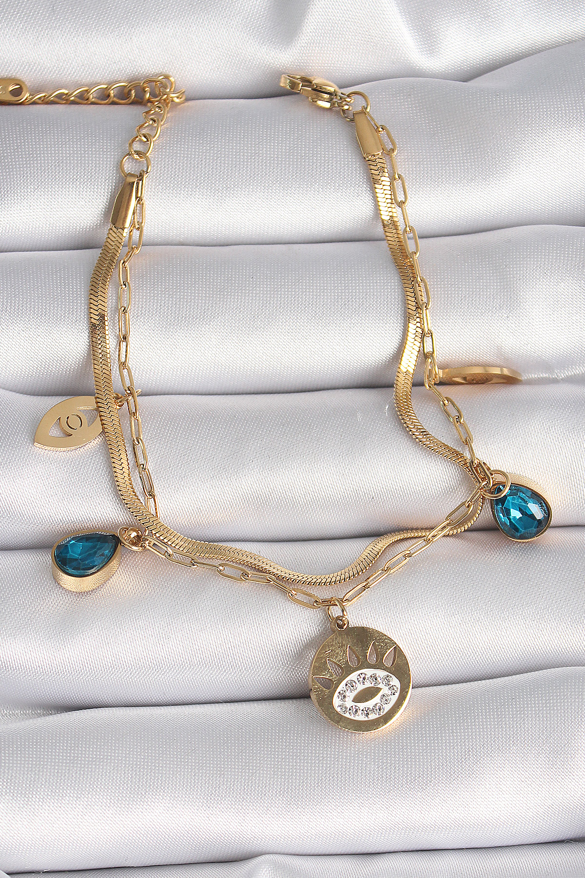 316L Çelik Gold Renk Zirkon Taşlı Göz İşleme Figür Kadın Bileklik - TJ-BB6501