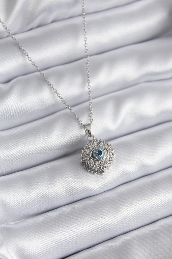 316L Çelik Gold Renk Zirkon Taşlı Göz Model Kadın Kolye - TJ-BKO8169